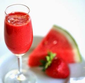 Blend fruit with the lime juice, sugar and half the water until smooth. Stir in the remaining water and refrigerate for one hour. If you prefer, you can strain out the pulp. You could also add mashed strawberries.