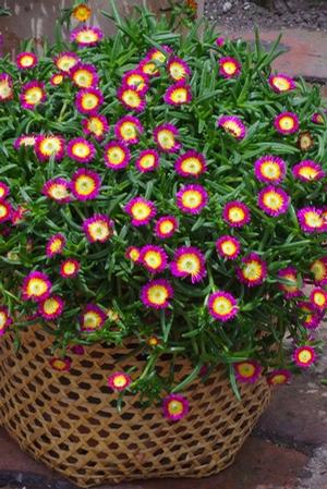 This beautiful groundcover features brightly colored blossoms which are much larger in size than many other Ice Plants. The vibrant colors of white, yellow, and bright pink radiate out from the center creating a stunning contrast.