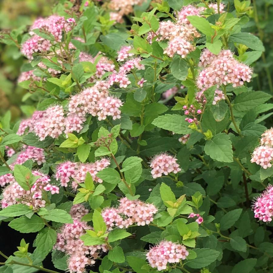 Flat clusters of soft pink flowers bloom in summer on a deciduous, mounding shrub. Slender branches are covered with mint green foliage. Makes an excellent accent, specimen or mass planting.