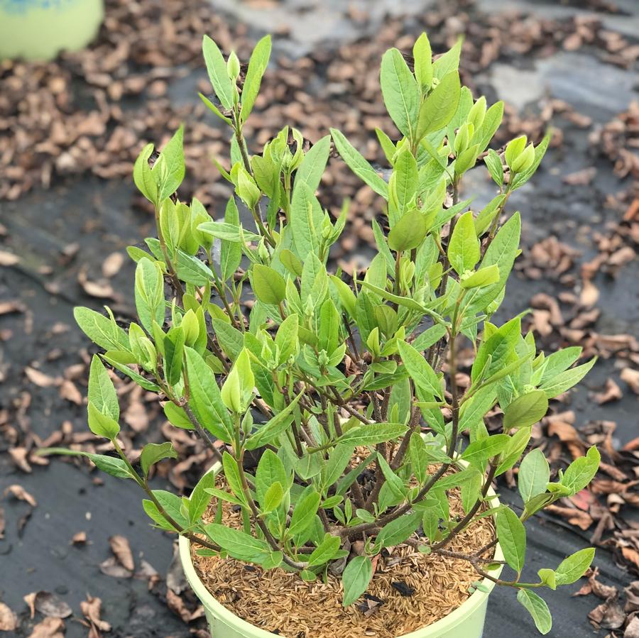 Multi-stemmed shrub with compact habit. Lustrous waxy deep green foliage turns rich burgundy in fall. Early summer flowering cymes of white produces fall berries that turn from green-pink to red-blue. Likes an acid soil. Deciduous.